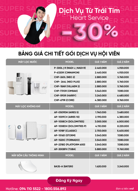 => Tham khảo chi tiết gói dịch vụ Heart Service tại đây: https://cowayvina.com.vn/membership-package
