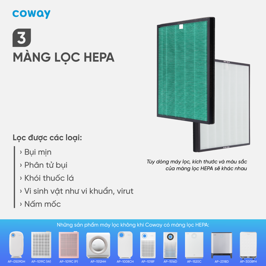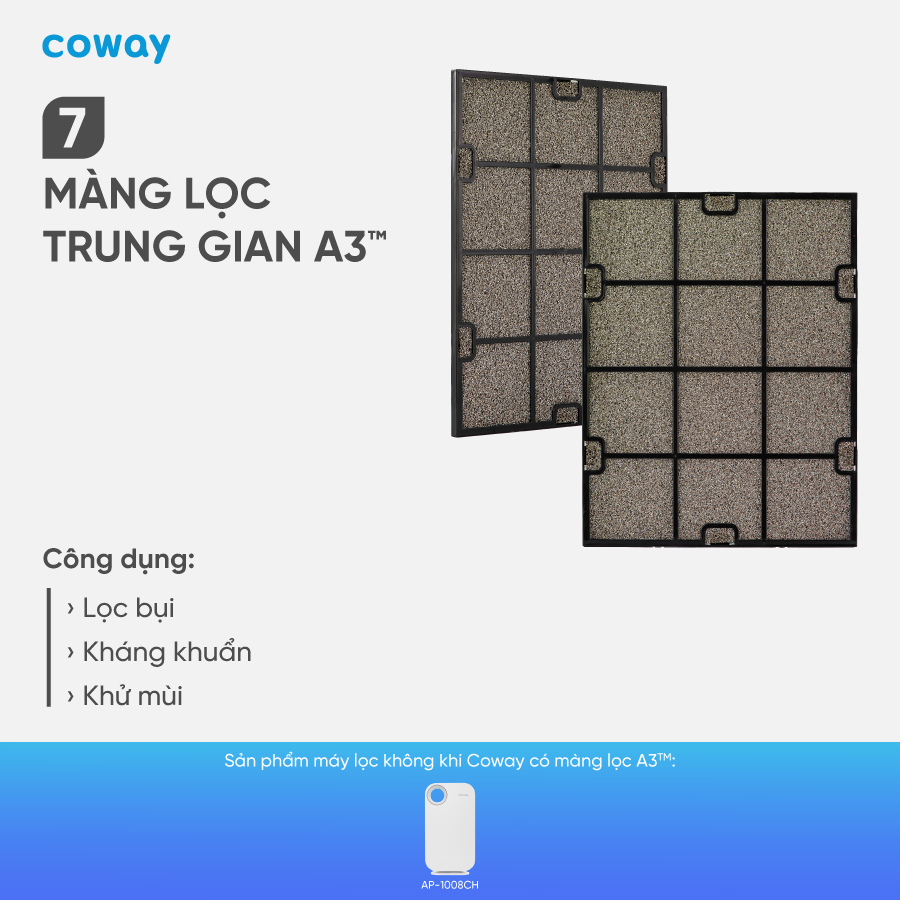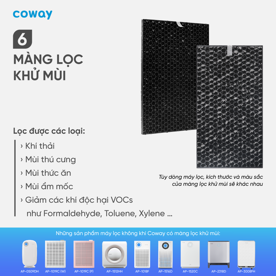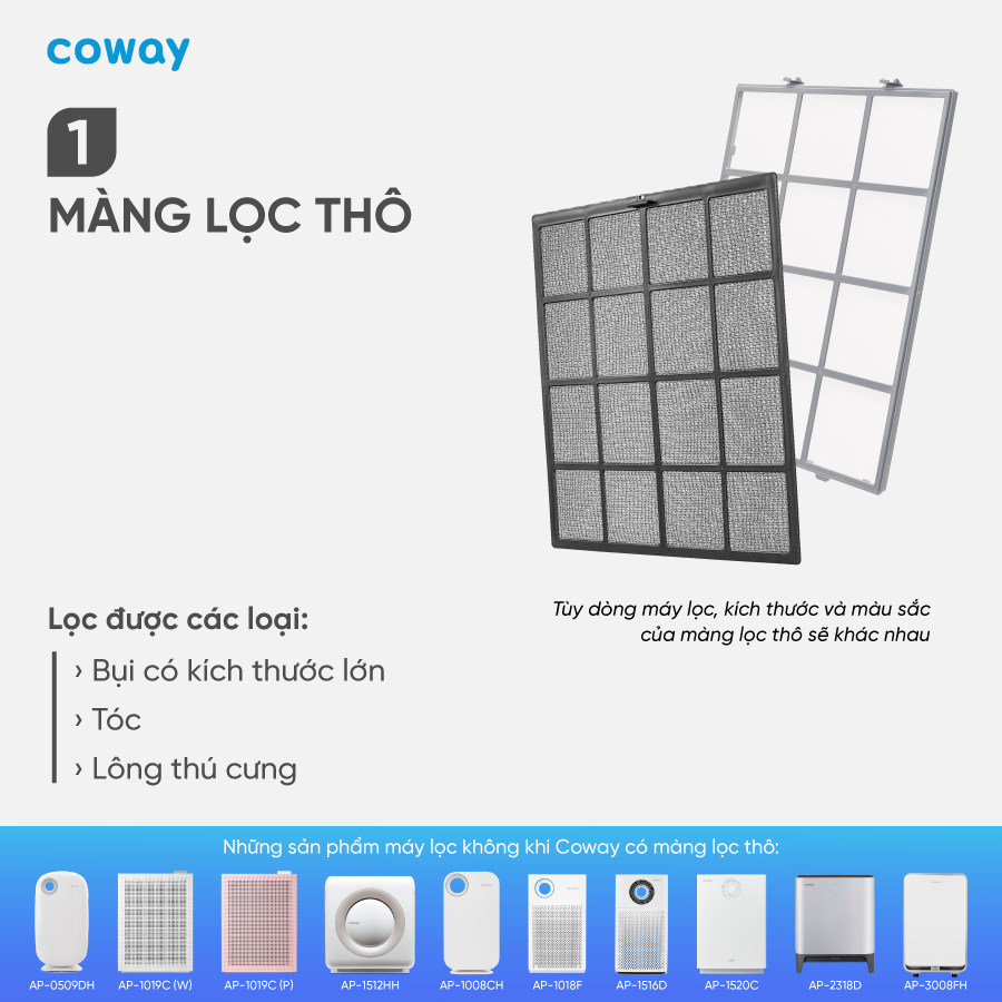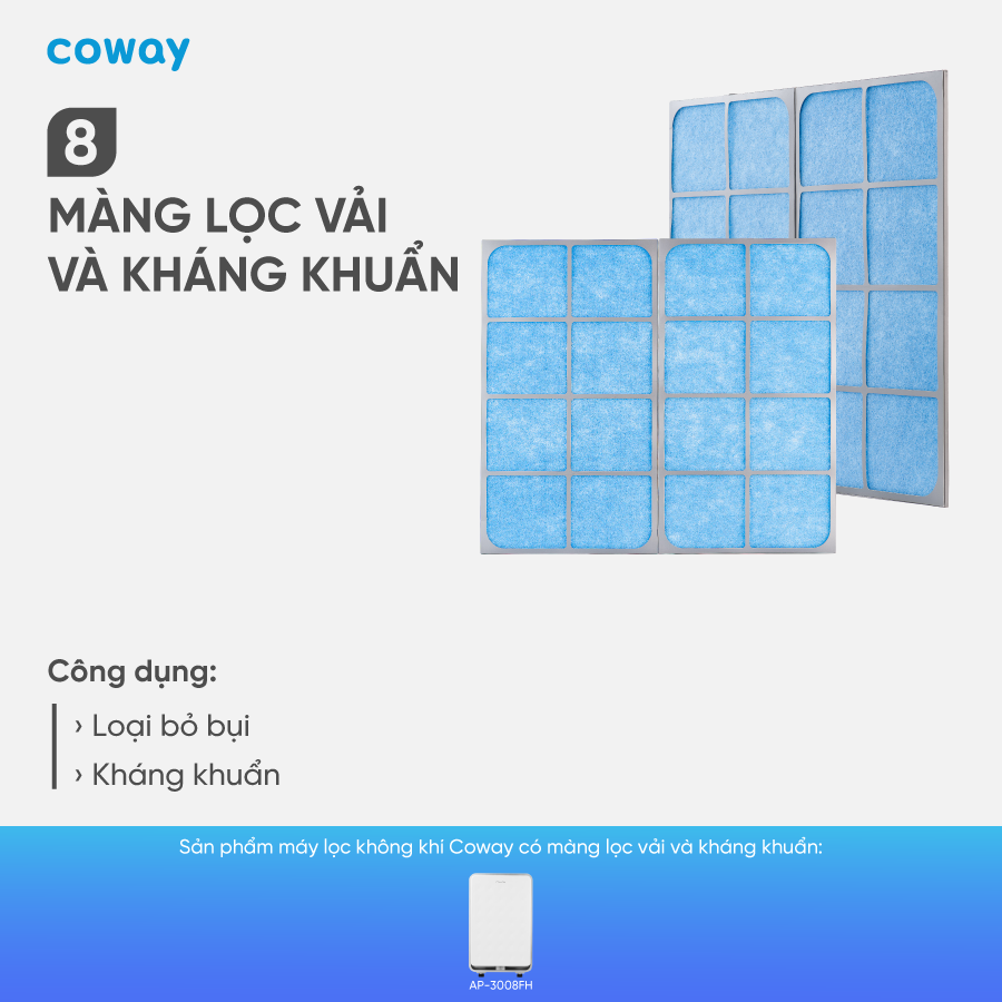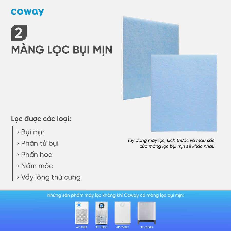 Phù Hợp Với Mọi Không Gian: Dù là phòng khách, phòng ngủ hay văn phòng, màng lọc không khí Coway đều có thể dễ dàng lắp đặt và hoạt động hiệu quả, mang lại không gian sống trong lành cho mọi thành viên trong gia đình.