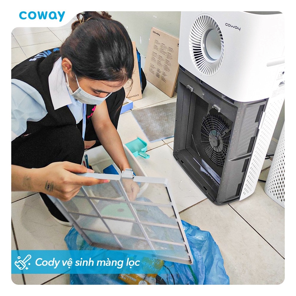 Lọc sạch ô nhiễm: Dù có thêm chức năng tạo ẩm, Coway vẫn không quên nhiệm vụ cốt lõi. Hệ thống màng lọc HEPA vẫn hoạt động bền bỉ để loại bỏ 99,99% bụi mịn, phấn hoa và khử sạch mùi thuốc lá, mùi thức ăn trong phòng.