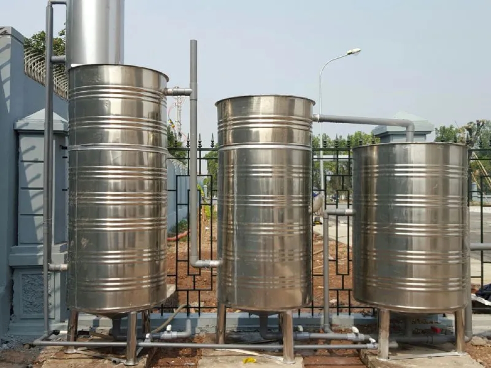 Hệ thống lọc tổng giếng khoan là giải pháp chuyên nghiệp và hiệu quả hơn so với bể lọc thủ công xử lý nước nhiễm sắt. Hệ thống này thường sử dụng các cột lọc áp lực composite hoặc inox có chứa các vật liệu lọc chuyên dụng. Nguyên lý hoạt động: Nước được máy bơm đẩy qua các cột lọc dưới áp suất cao. Các vật liệu lọc bên trong sẽ giữ lại toàn bộ kim loại nặng, phèn sắt và tạp chất.